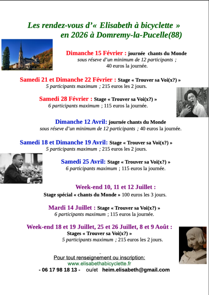 Les inscriptions se font par mail heim.elisabeth@gmail.com ou téléphone au 06 17 98 18 13.